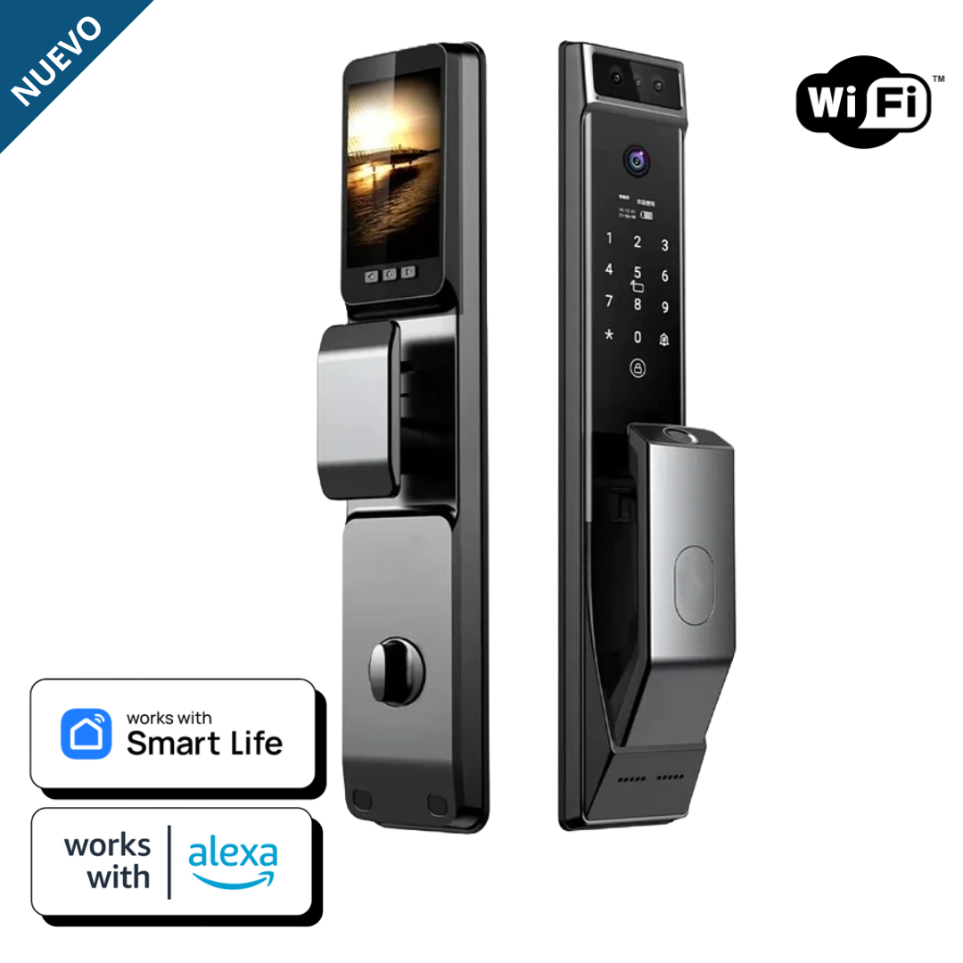 Accede de 8 formas distintas, incluyendo reconocimiento facial 3D, lector de palma, huella, contraseña digital, tarjeta NFC, llave física, apertura remota vía Smart Life y ahora comandos de voz con Alexa para mayor comodidad.