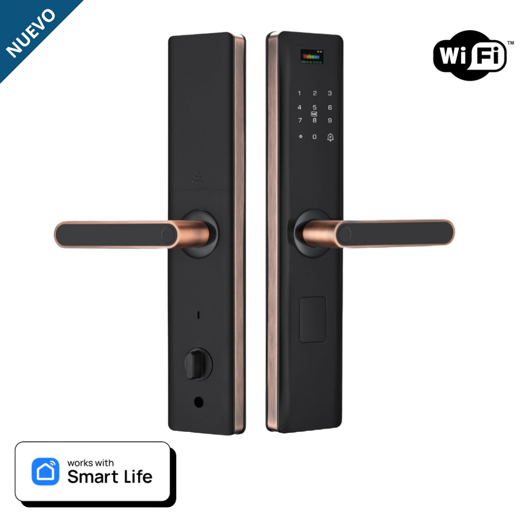Protege tu hogar con la avanzada Cerradura Inteligente ROSESLUX, equipada con tecnología de seguridad tipo bóveda de nivel 9. Cuenta con 4 pasadores y un pestillo, garantizando la máxima protección. Accede fácilmente con tu huella digital, tarjeta NFC, clave digital, llave física o desde tu celular de manera remota con la App Smart Life. Además, puedes generar claves temporales para invitados en segundos. ¡Con la Cerradura Inteligente, vive con total tranquilidad!. Más detalles sobre beneficios y características en el menú desplegable a continuación: