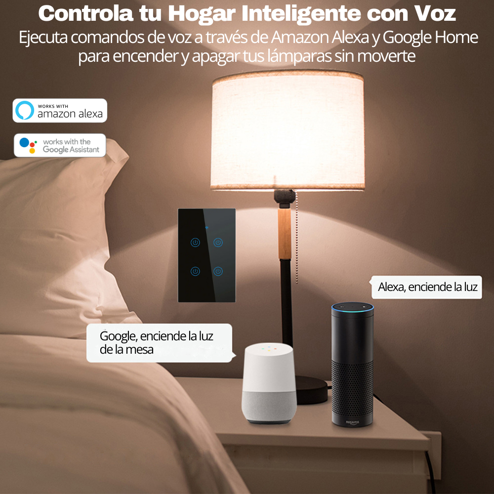- Comando de voz a través de los asistentes Alexa y Google Home para comodidad y rutinas inteligentes